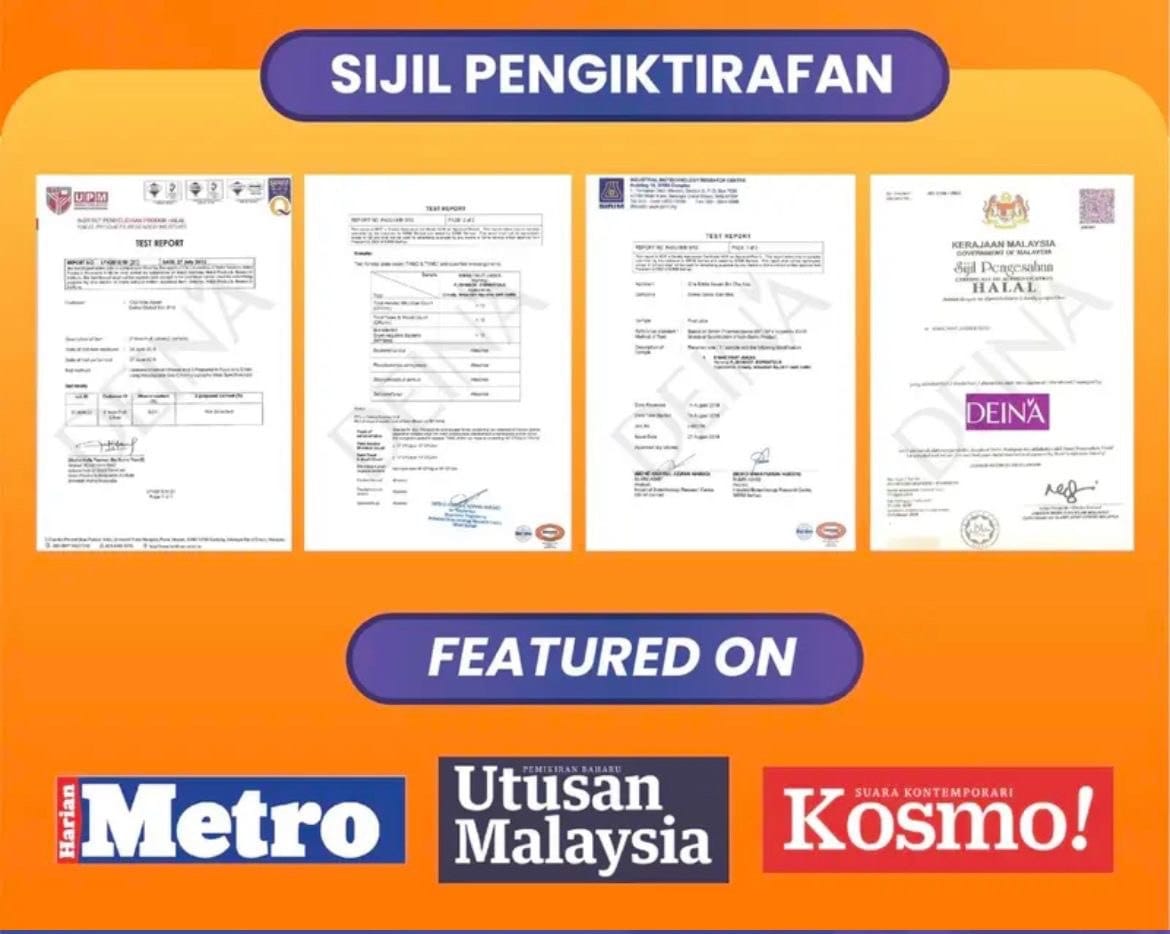 Produk kami telah diuji didalam makmal dan terbukti tidak menyebabkan sebarang kesan jangka masa panjang. Kebersihan juga terjamin dengan status HALAL!