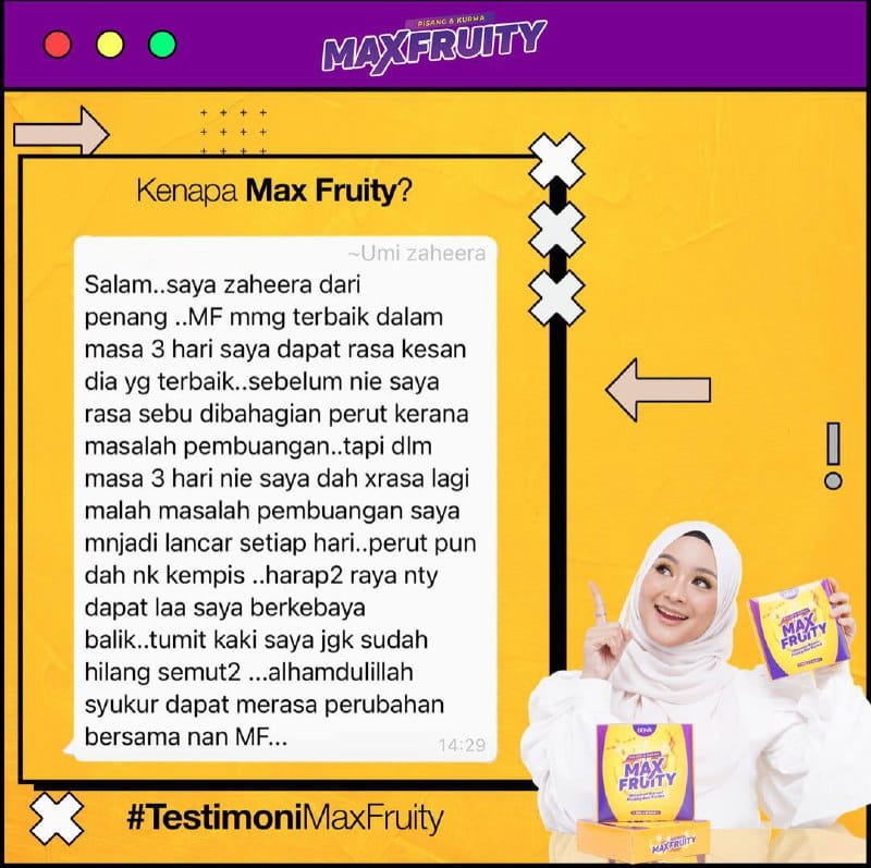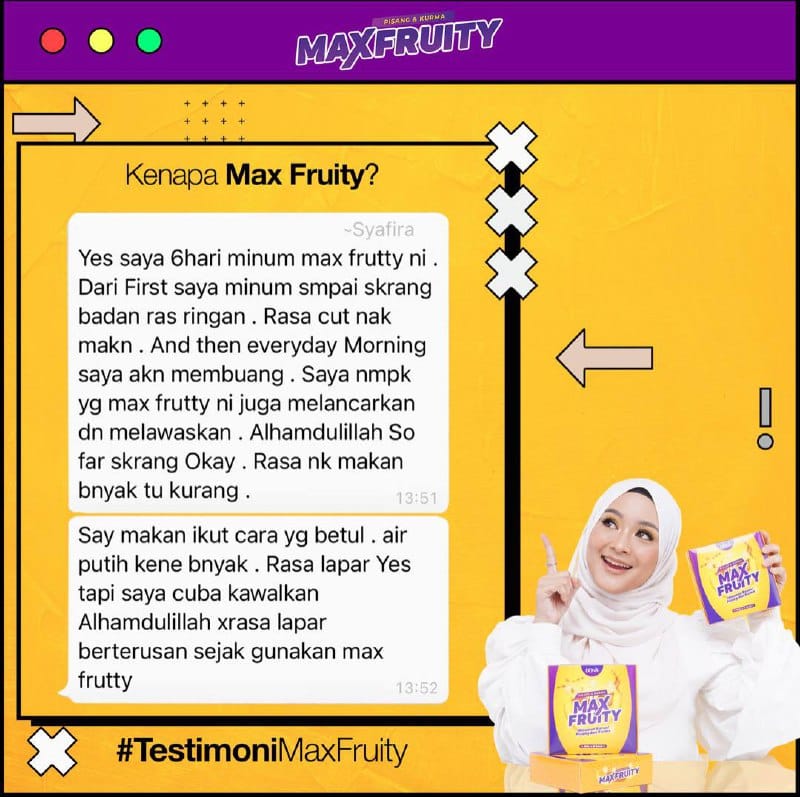 *Klik & Tonton Video Pendek di Bawah. Feedback positif pengguna MAX FRUITY selepas gunakan seawal 3 hari.